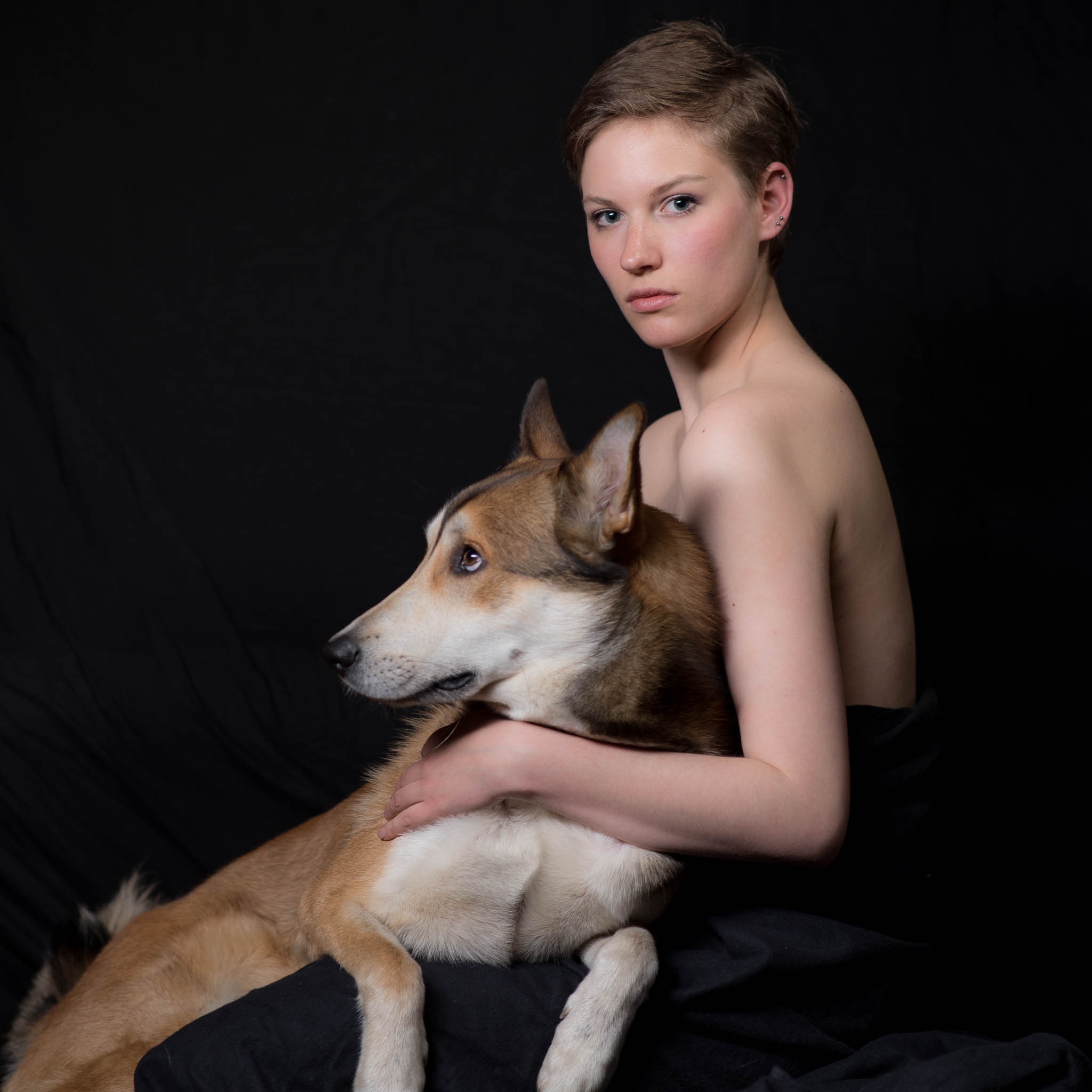 Immer wieder gerne fotografiere ich Ana-Carolina Kleine. Sie war Model bei meinem ersten Workshop bei dem ich der Portrait-Fotografie näher gekommen bin. Auch diesen Frühling hat es wieder geklappt, diesmal mit Anas neuem Look, einer Kurzhaarfrisur. Leider konnten wir aufgrund des schlechten Wetters nicht nach draußen und haben daher das ganze Shooting in meinem kleinen Studio gemacht. Ein Shooting mit Ana-Carolina ist immer etwas besonderes, aber diesmal war als I-Tüpfelchen noch Ihr Hund dabei. Es ist jedes mal spannend mit Tieren zu arbeiten und hier hat es hervorragend geklappt.