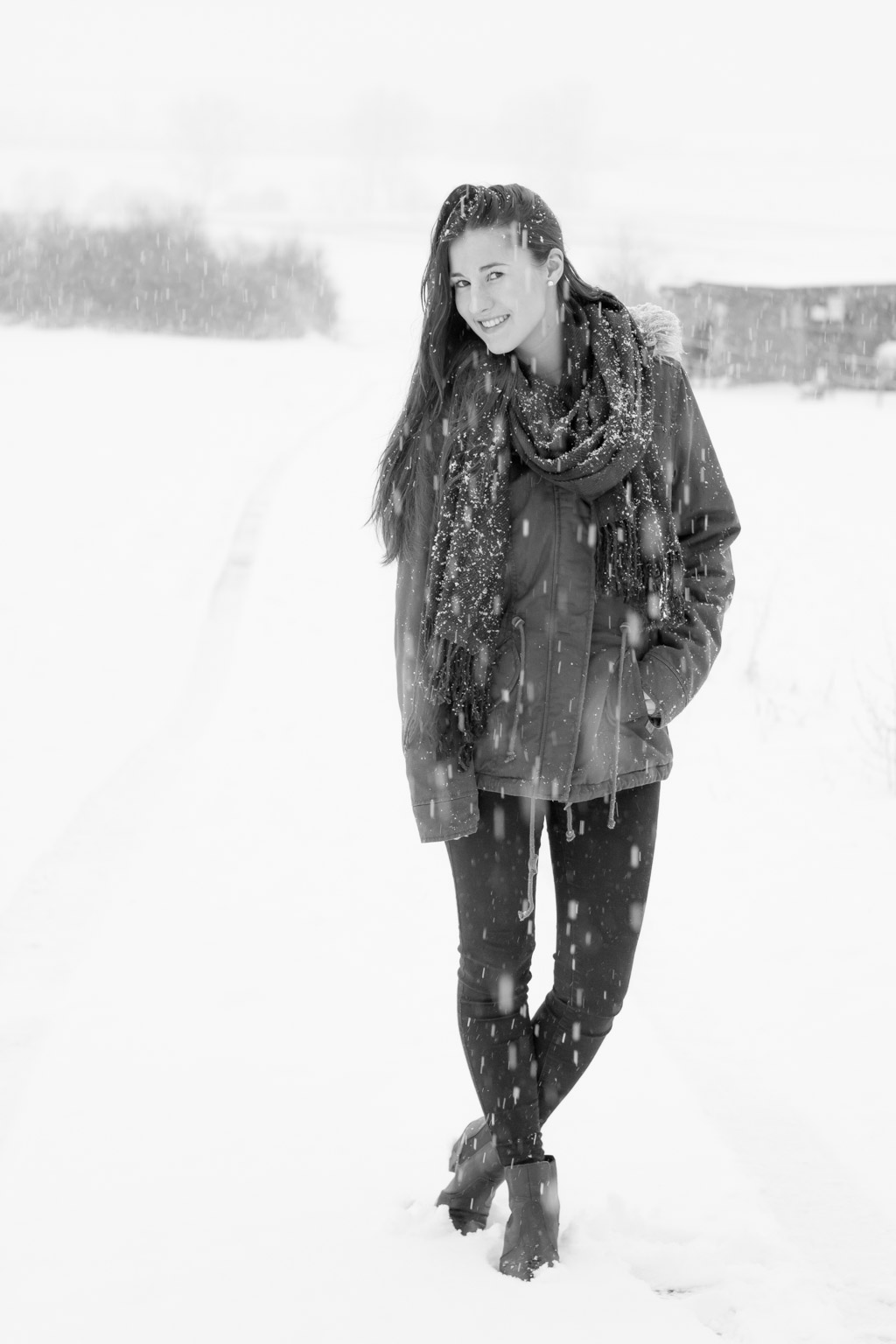 Beim Warten auf eine S-Bahn schneite es mit wunderschönen dicken Flocken und der Gedanke an ein kurzes Shooting im Schnee machte sich breit. Anja hat sich auf meine Anfrage dann auch tatsächlich innerhalb kürzester Zeit gemeldet und so kam innerhalb von Minuten ein spontanes, kurzes Shooting zustande. In winterlichem Wetter war Anja bestens gelaunt und innerhalb kürzester Zeit entstanden tolle Bilder im Schnee. Eine Stunde nach der Anfrage war das ganze Shooting bereits gelaufen und die Bilder im Kasten. Und was für schöne Bilder:
