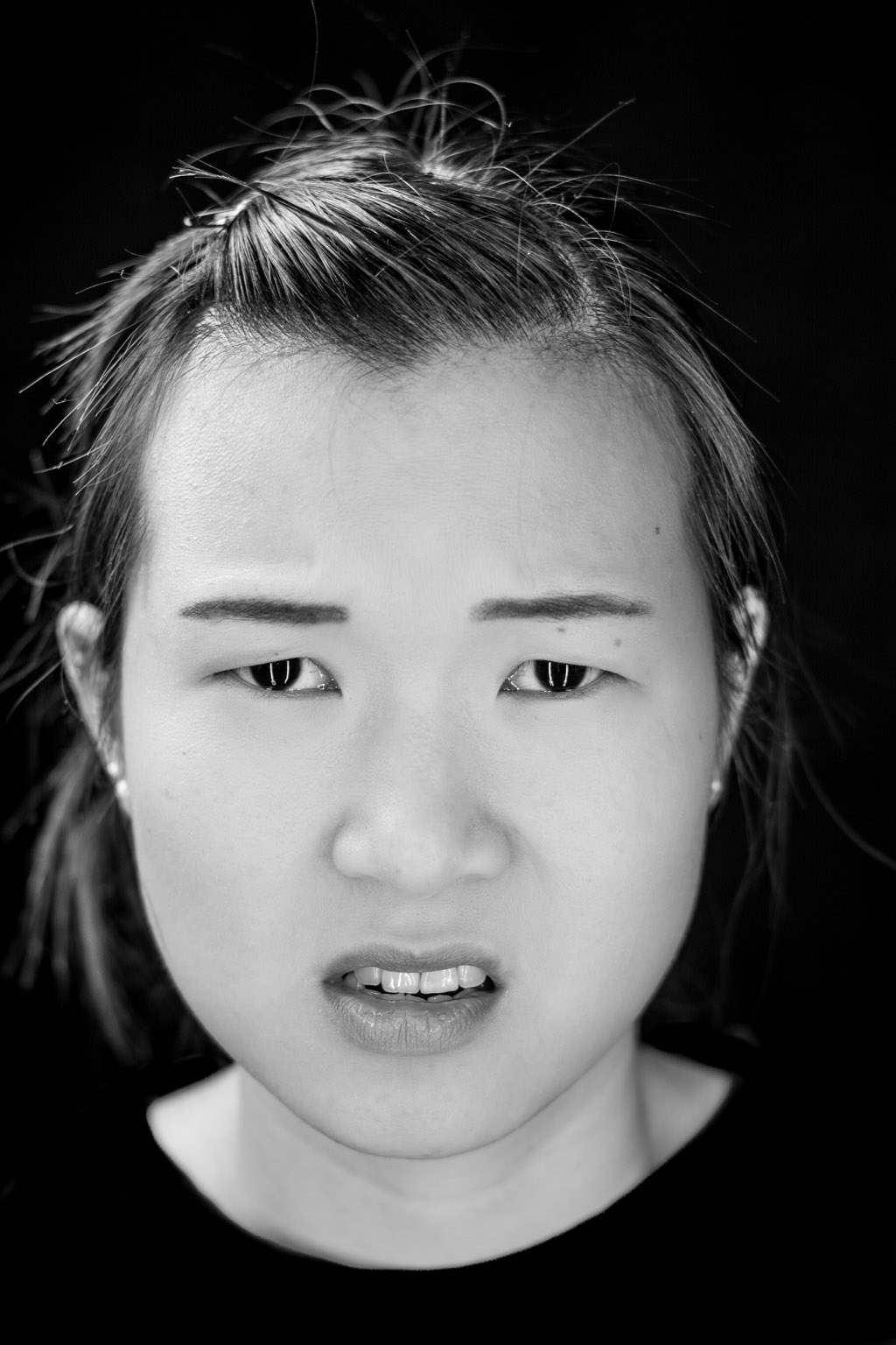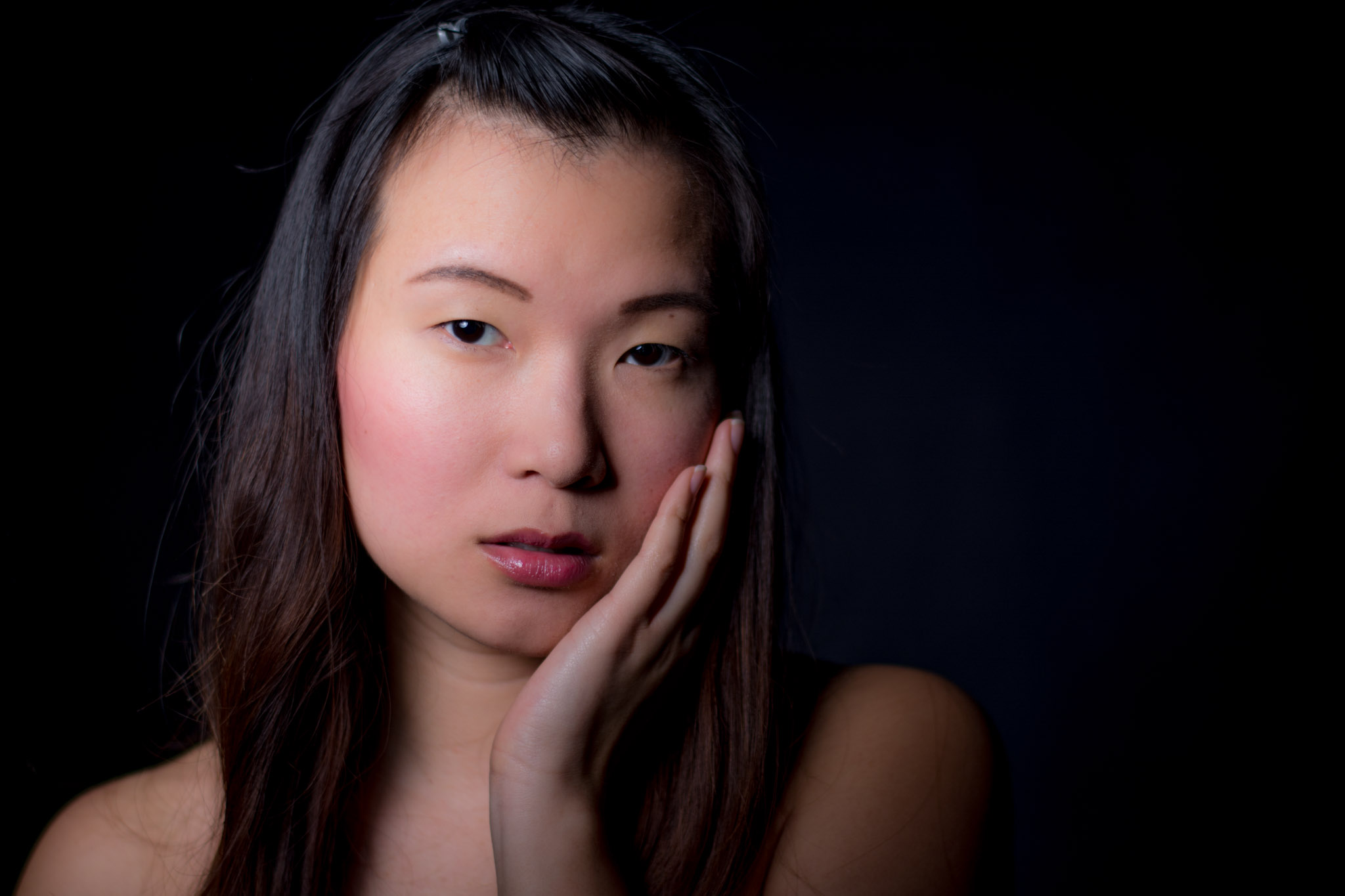 Trotz unerfreulich voller Straßen und Stau auf dem Weg zu mir war Yueru erst mal einfach zu fröhlich und gut gelaunt um ein richtig zorniges Gesicht auf den Chip zu bannen. Trotzdem hielten wir an der Bildidee des Zorns noch eine Weile fest und schafften es mit viel Humor bei der Sache ihr eine dramatische Mimik zu entlocken. Danach versuchten wir verschiedene andere Emotionen. Das ist ein Stück weit gelungen, aber nicht so einfach wie wir gedacht hatten. Zusammen haben wir dann weitere Posen und Stimmungen ausprobiert und dies in einigen wunderbaren Bilder festgehalten. Vielen Dank Yueru für die tolle Zusammenarbeit an diesem Abend.